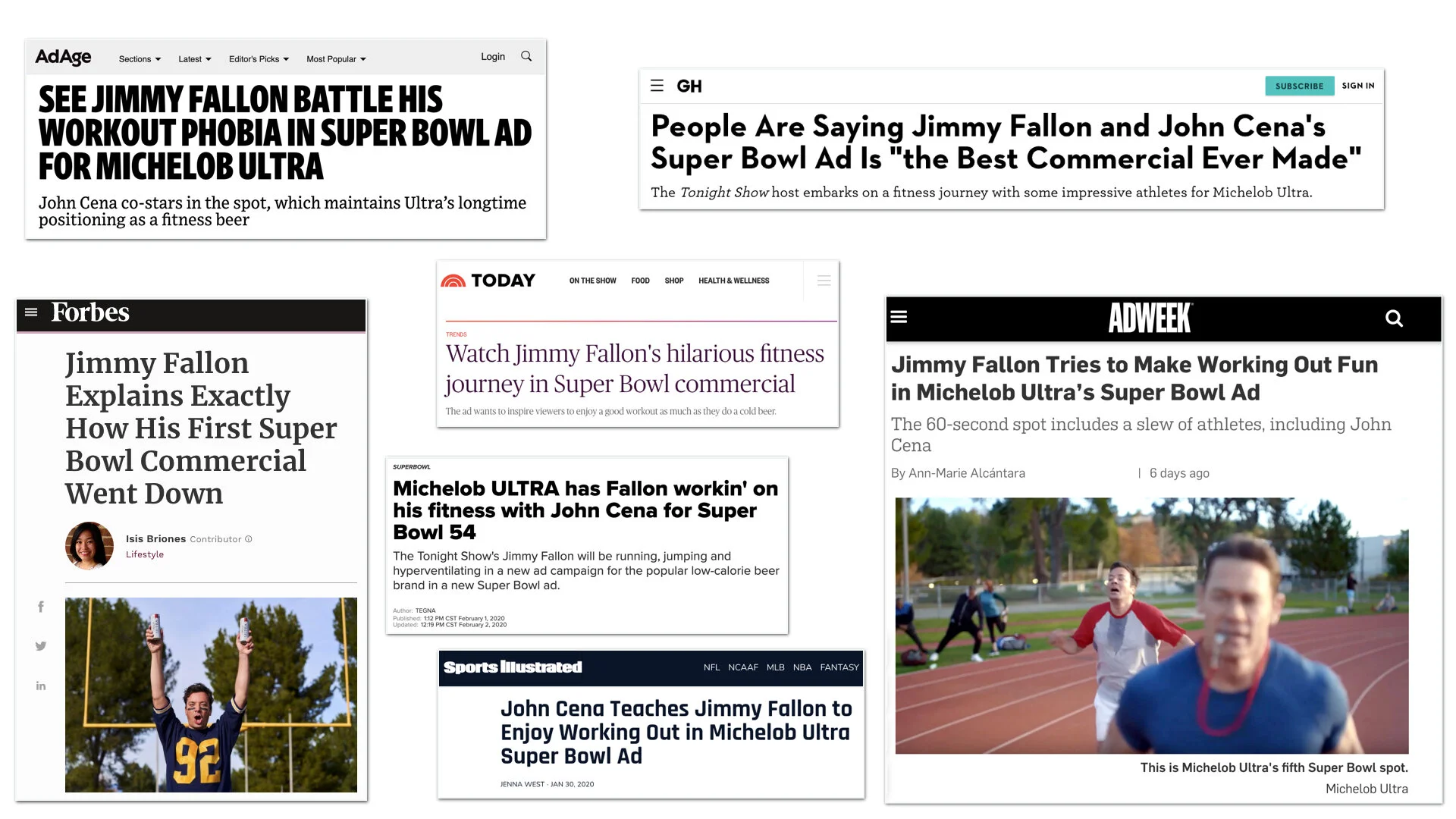 FEATURED IN: Ad Age, Adweek, The Today Show, Forbes, ESPN, Sports Illustrated, People, USA Today Ad Meter, Reel 360, Good Housekeeping, and many more.
